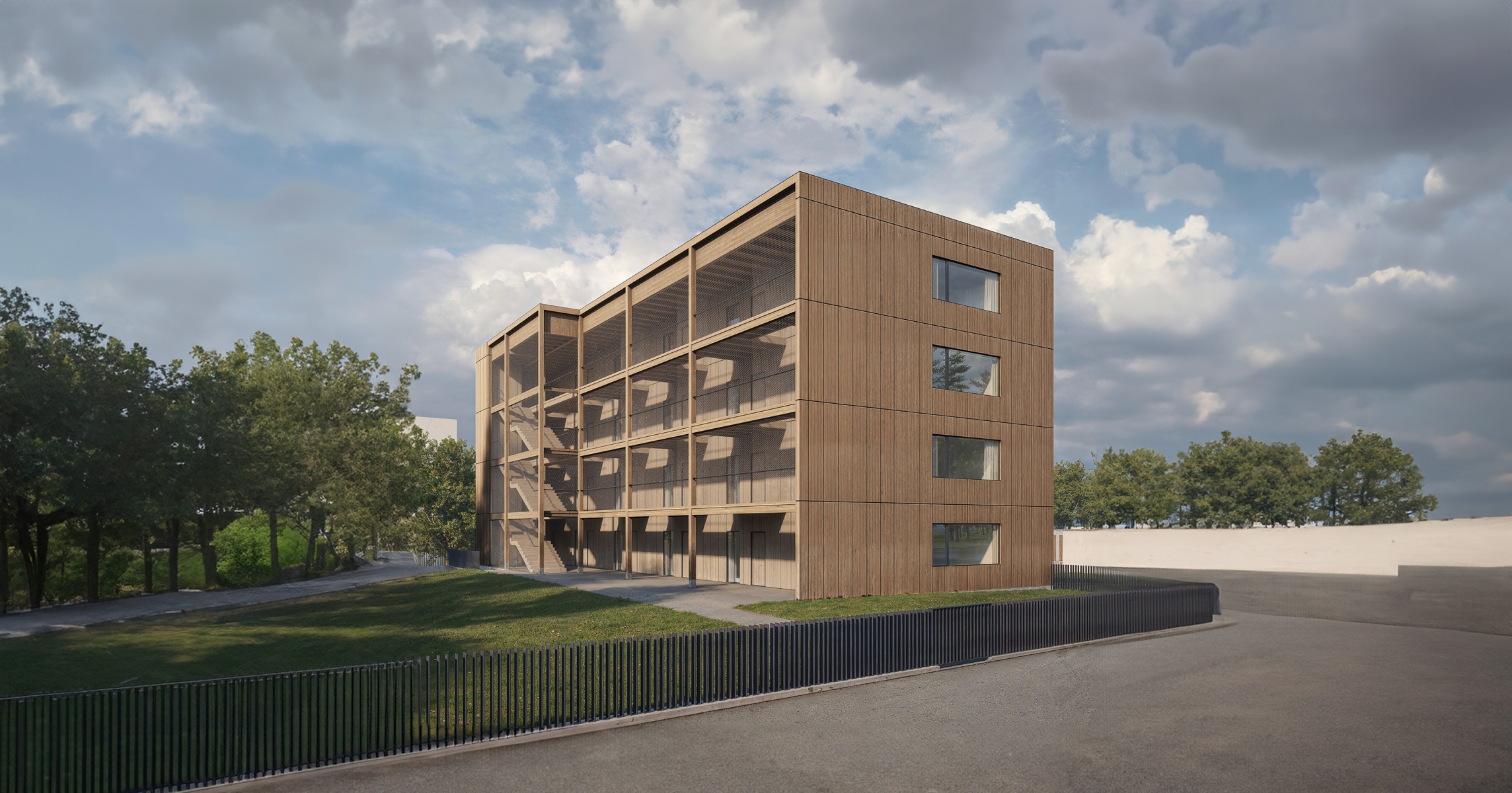 Projekt bytového domu na pomezí ulic Neumannova a Novoměstská ve Žďáru nad Sázavou reaguje na rozmanité městské prostředí – historickou zástavbu a panelové sídliště a citlivě doplňuje chybějící městské nároží. Je koncipován jako objekt s jedním podzemním a čtyřmi nadzemními podlažími, které plynule navazují na okolní urbanistický ráz. Fasáda obklopuje vnitřní komunitní zahradu, která podporuje pocit sounáležitosti. Otevřené pavlače umožňují sousedské setkávání při zachování soukromí. Celkově jde o promyšlenou novostavbu, která přispívá k udržitelnému a kompaktnímu rozvoji centra města.