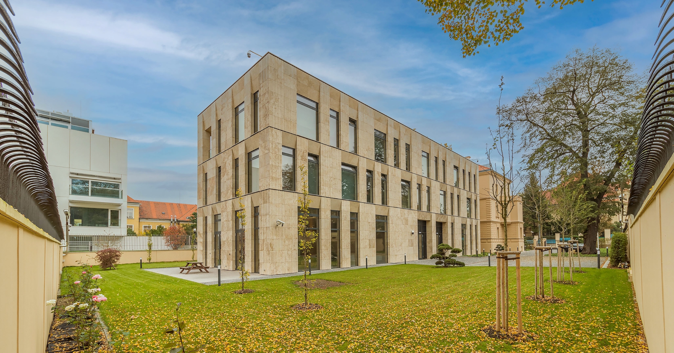 Projekt spočíval v rekonstrukci historické uliční vily a přístavbě nového zahradního křídla pro velvyslanectví Korejské republiky. Uliční vila v neorenesančním stylu byla obnovena a zachována jako samostatný objekt, hmotově oddělený od novostavby západního křídla subtilním skleněným krčkem. Rekonstrukce vrátila vile podobu, kterou získala po přestavbě před rokem 1909, kdy byla zvýšena na tři nadzemní podlaží a podkroví. Součástí projektu bylo nejen zachování původních architektonických rysů, ale také citlivé doplnění o moderní prvky, které propojují starou a novou část. Podkladem pro návrh rekonstrukce a přístavby byly dochované plány z jednotlivých fází výstavby původního objektu.