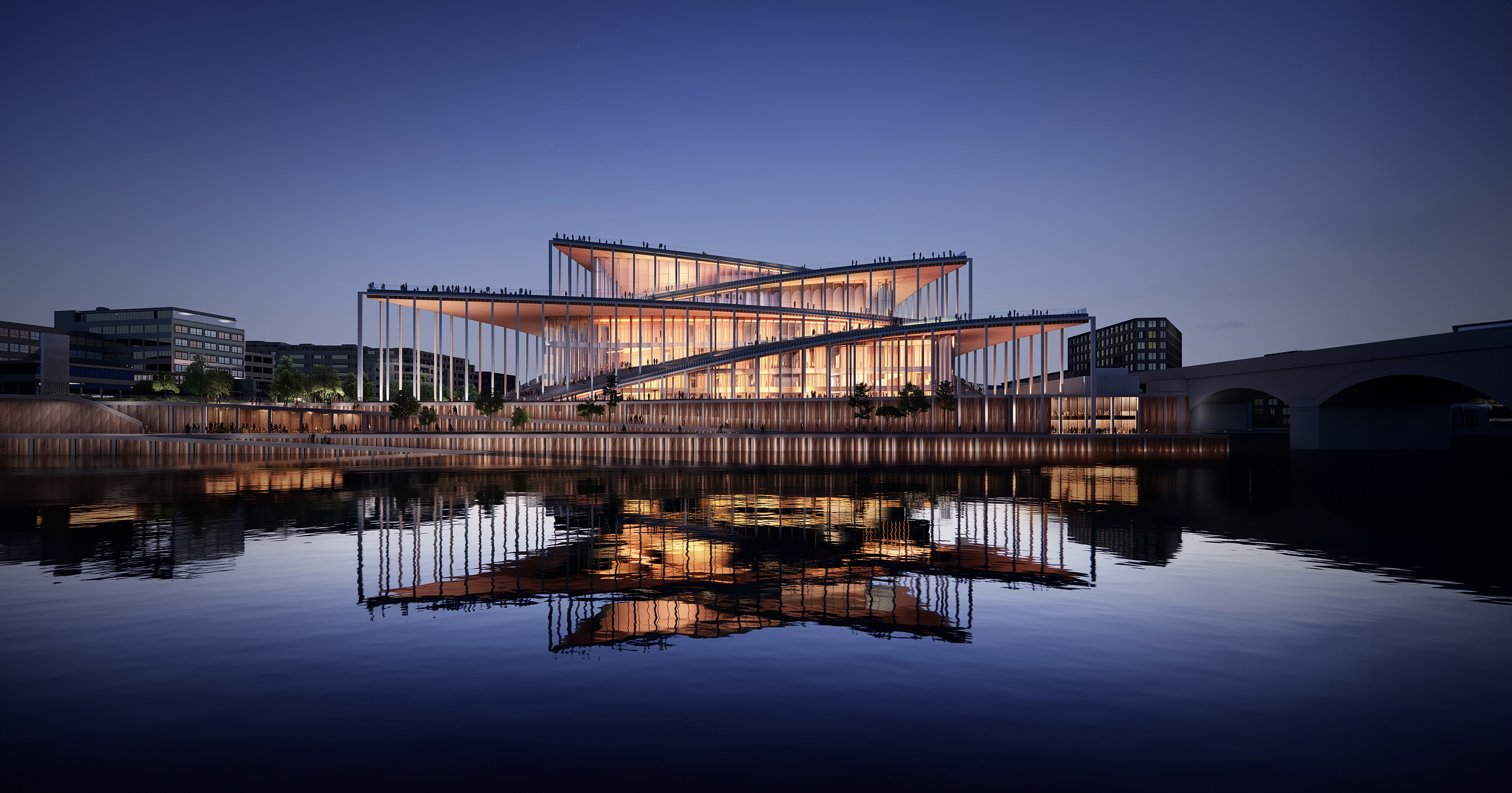 Návštěvníci se mohou těšit na tři koncertní sály s kapacitami 1800, 620 a 500 míst k sezení, ale rovněž kavárnu, city view bistro, dvě restaurace (jednu s výhledem na město a druhou na nově vybudovaném nábřeží) nebo prostor pro kreativní hub.